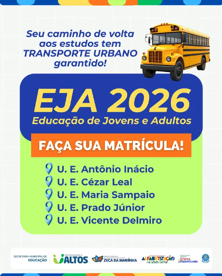 Sabendo que a rotina pode ser desafiadora, o transporte urbano será garantido para que o seu caminho de volta aos estudos seja tranquilo e seguro. A Secretaria Municipal de Educação orienta os interessados a procurarem a unidade escolar mais próxima para realizar a matrícula e obter informações sobre turmas, horários e documentação necessária. O início de um novo ano letivo representa também a oportunidade de recomeçar, aprender e conquistar novos objetivos por meio da educação.