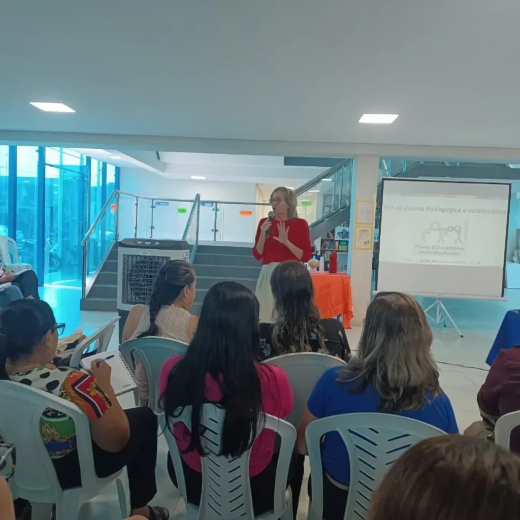 Durante a formação, foram discutidas ações voltadas à organização do trabalho pedagógico, à integração entre as equipes multiprofissionais e ao acompanhamento contínuo dos processos de ensino e aprendizagem, reforçando a importância do trabalho colaborativo entre os diferentes profissionais que atuam na educação municipal.