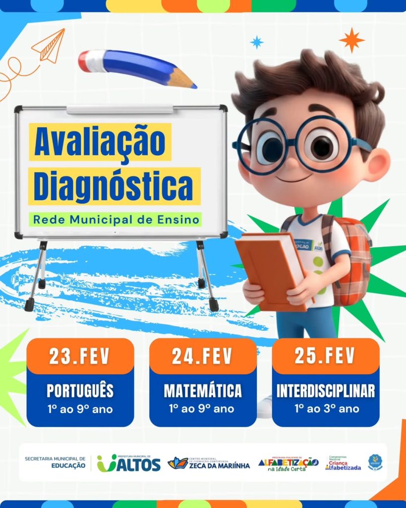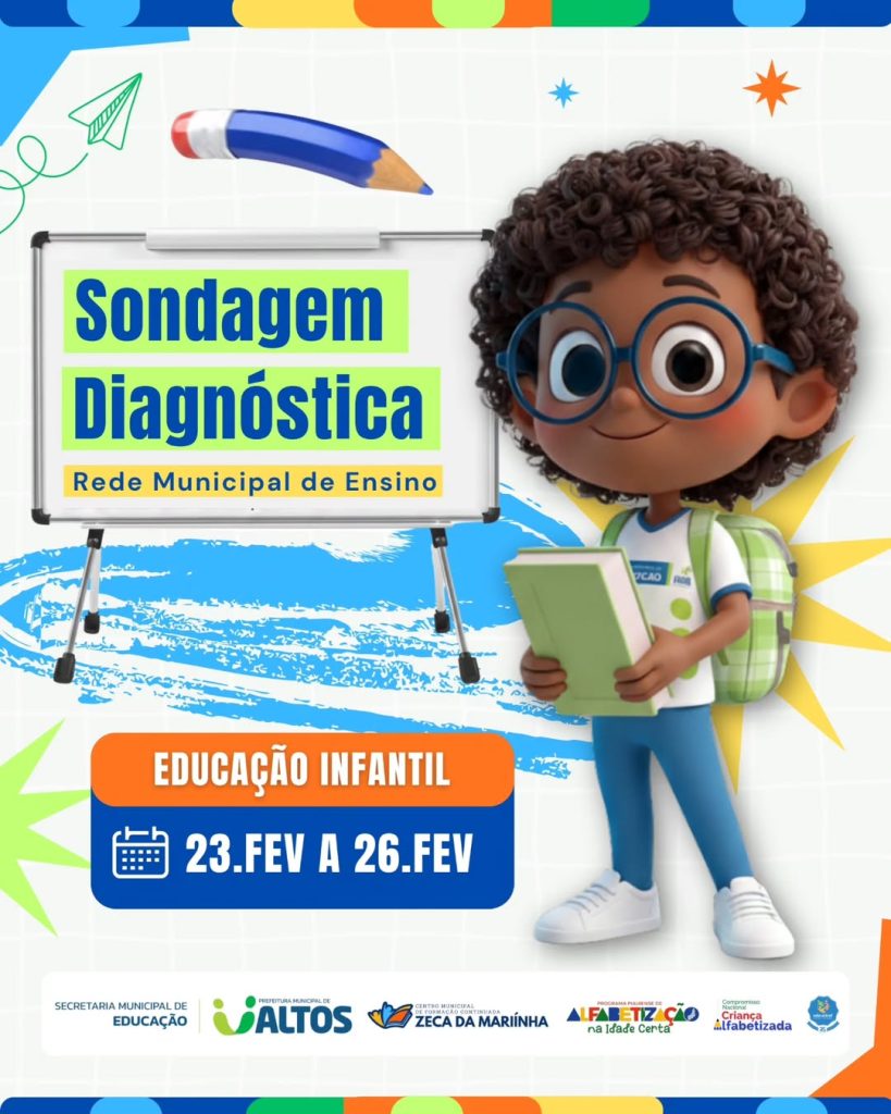 A Secretaria Municipal de Educação de Altos (SEMED) dará início, na próxima semana, à Avaliação e Sondagem Diagnóstica 2026 na Rede Municipal de Ensino. A iniciativa tem como objetivo acompanhar de forma criteriosa o desenvolvimento dos estudantes e identificar o nível de aprendizagem de cada etapa escolar.